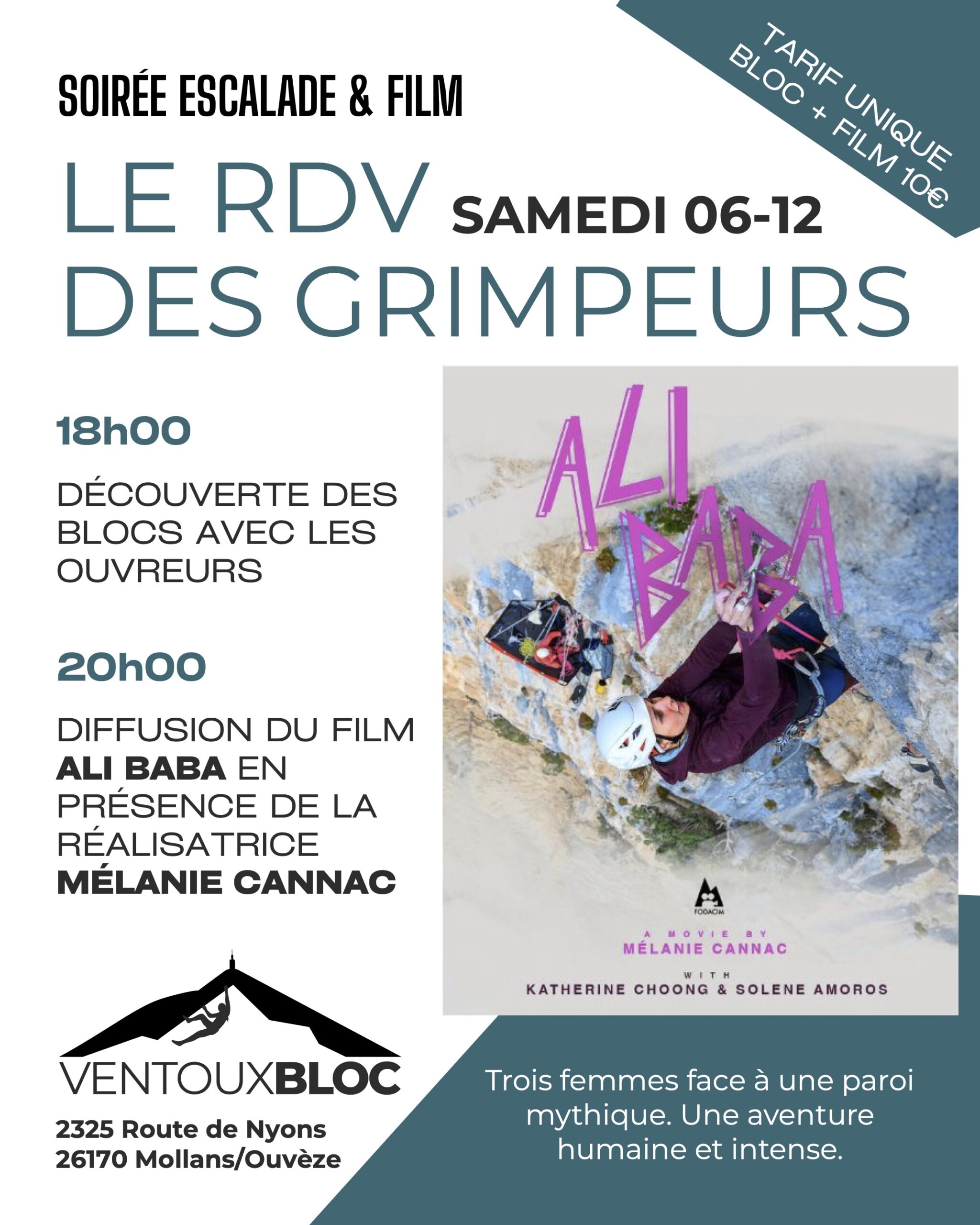 Samedi 6 décembre - 1er RDV des GRIMPEURS - Diffusion du film ALI BABA avec la présence de la réalisatrice Mélanie Cannac